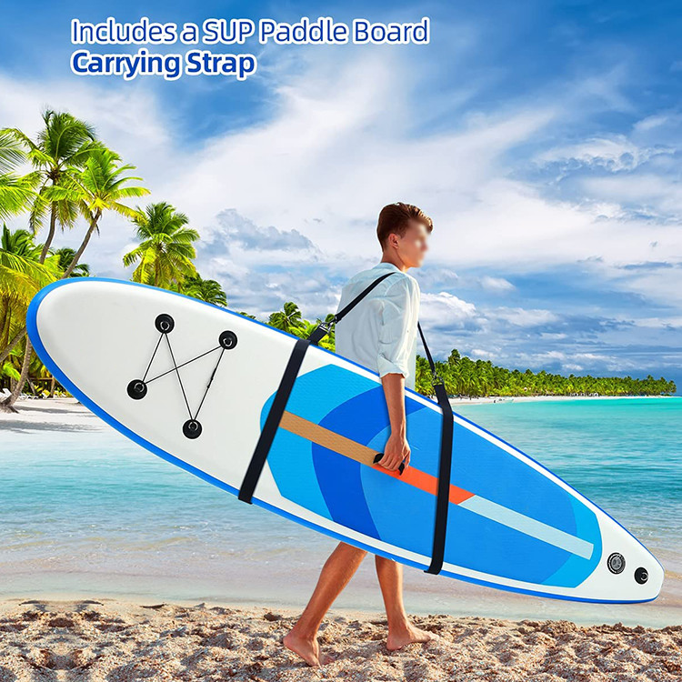 - Łatwy transport i inflacja: Napompuj i wiosłuj, zanim się zorientujesz!Użyj pompy kompresyjnej lub pompki do opon z adapterem zaworu powietrza, a będziesz na wodzie w mgnieniu oka.Ponadto noszenie nieporęcznej deski wiosłowej może być trudne, ale ułatwiliśmy Ci życie, dodając pasek do noszenia SUP.Po prostu przymocuj wiosło do paska nośnego i wyreguluj długość rzepa.