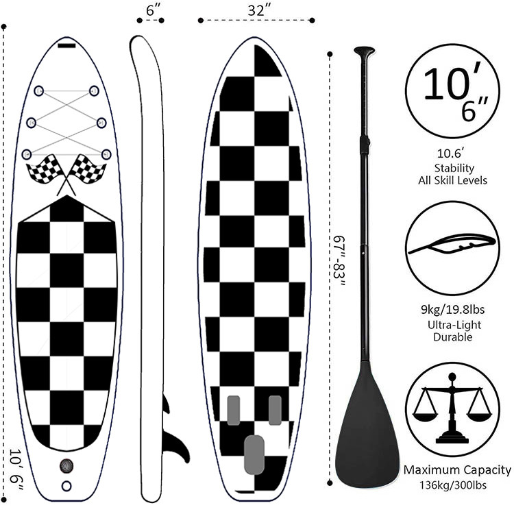 - Nowa ultralekka konstrukcja dwuwarstwowego PVC, maksymalna pojemność do 300 funtów, stabilna i świetna na wszystkie poziomy umiejętności i warunki.